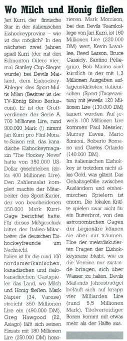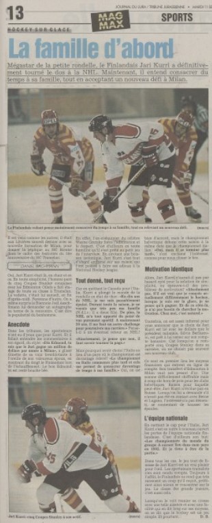 Am 1. August 1990 wird es offiziell verkündet, Jari Kurri wechselt von den Edmonton Oilers nach Mailand. Der erfolgreichste europäische Skorer der National-Hockey-League aller Zeiten, wechselt vom Stanley-Cup-Sieger nach Italien. Nach zehn Spielzeiten und fünf Stanley-Cups in der NHL braucht der Finne einen Tapetenwechsel und wird in Italien nur noch halb so viele Spiele absolvieren, zudem kann er im Frühling die Weltmeisterschaft in seiner finnischen Heimat in Turku, Tampere und Helsinki bestreiten.