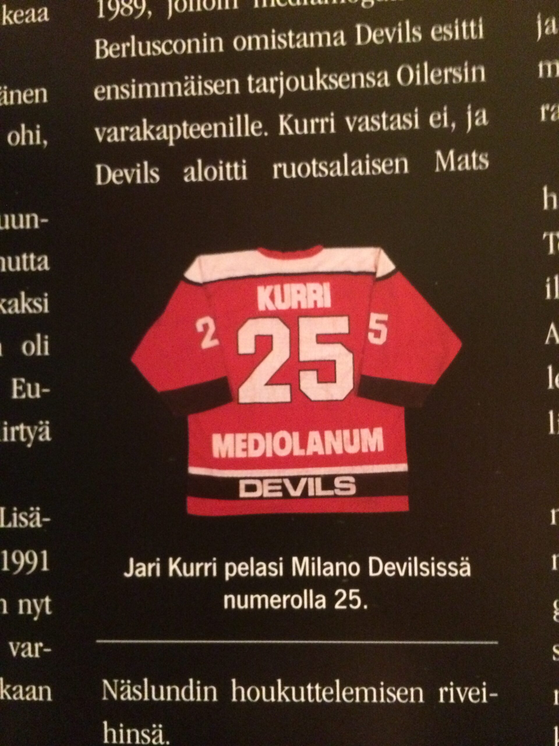 In insgesamt sechs Duellen gegen Stadtrivale HC Saima Mailand unterliegen Kurri und die Devils viermal. Die entscheidende Partie um den Titel (Scudetto) verlieren die Devils in der Finalrunde, am 19. Februar 1991 im Forum von Mailand vor 7’500 Fans mit 3:4.