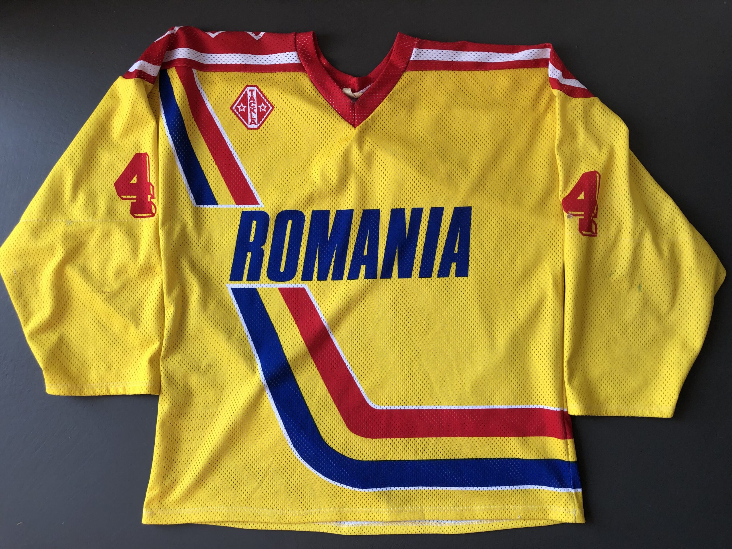 Die Nummer vier Rumäniens, die Suche nach einem eher kleinen Spieler (aufgrund der Leibchengrösse L) gestaltet sich als schwierig. Das Jersey-Design mit dem roten Tackla-Logo auf der Brust trägt Rumänien an den Weltmeisterschaften 1992 und 1993. Für die Nummer vier kommen nur zwei Spieler in Frage. Beim Senior-Team ist es Laszlo Vargyas, welcher mit einer Körpergrösse von 192 cm und 100 kg nicht in Frage kommt. Beim U18 Nationalteam spielt Jozsef Adorjan mit einer Grösse von 176 cm und dürfte in das L-Jersey passen. Die U18 Weltmeisterschaft der Gruppe B wird in Lillehammer und Hamar gespielt, Stürmer Adorjan steuert in sieben Partien mit Rumänien einen Assist bei.